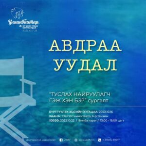 Сургалт 2022 оны 10 дугаар сарын 22-ны бямба гарагт 13:00 – 15:00 цагийн хооронд “Тэнгис” кино театрын 6-р танхимд болно.