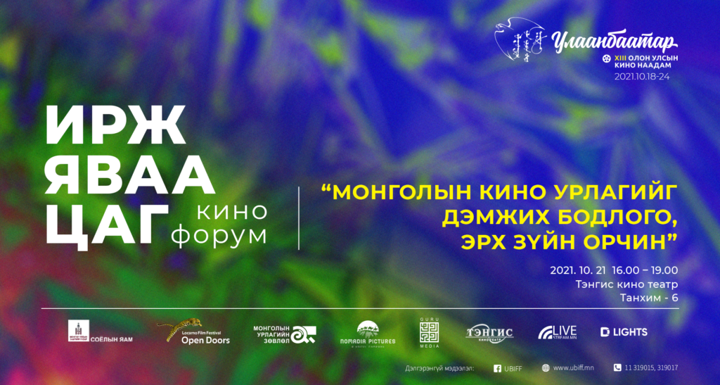 Улаанбаатар” олон улсын кино наадам нь уламжлал болсон “Ирж яваа цаг” кино форумыг “Монголын кино урлагийг дэмжих бодлого, эрх зүйн орчин” сэдвийн хүрээнд 2021 оны 10 сарын 21-нд 16:00-19:00 цагийн хооронд Тэнгис кино театрын 6-р танхимд зохион байгуулах гэж байна.