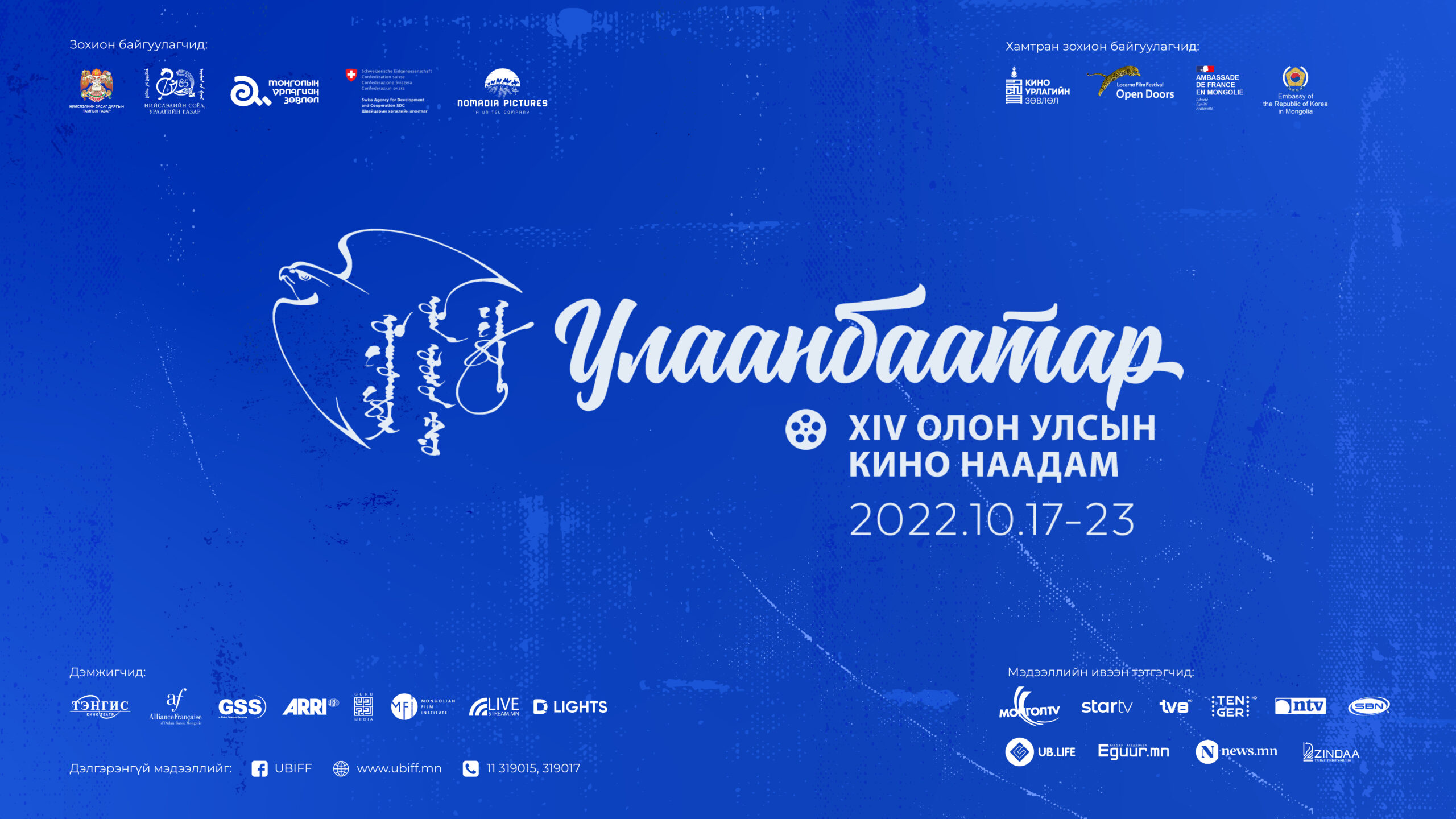 Монголын Урлагийн Зөвлөл (МУЗ) нь Нийслэлийн Засаг Даргын Тамгын Газар, Нийслэлийн Соёл, Урлагийн Газар, Кино Урлагийн Зөвлөл, Швейцарын Хөгжлийн Агентлаг, Номадиа Пикчерс ХХК-тай хамтран БНФУ-ын Элчин Сайдын Яам, БНСУ Элчин сайдын яамны дэмжлэгтэйгээр Монголын кино урлагийн салбарыг хөгжүүлэхэд хувь нэмэр оруулах, кино уран бүтээлчдийн олон улсын хамтын ажиллагааг нэмэгдүүлэх, дэлхийн нэр хүндтэй наадмуудад шалгарсан кино бүтээлийг Монголын үзэгчдэд хүргэх зорилготой 14 дэх удаагийн “Улаанбаатар” Олон Улсын Кино Наадам (УБОУКН)-ыг 2022 оны 10-р сарын 17-23-ний өдрүүдэд Улаанбаатар хотноо зохион байгуулах гэж байна. Энэ жилийн наадмын онцлох орноор Бүгд Найрамдах Солонгос Улс сонгогдсон ба зохион байгуулагчид Канн, Берлин, Венец, Торонто зэрэг дэлхийн А зэрэглэлийн кино наадмын шагналт, 2021-2022 онд бүтээгдсэн Солонгос, Франц, Герман, Турк, Швед, Финланд, Иран, Испани, Исланд, Итали, Польш, Румын, Швейцар болон Монголын 17 бүрэн хэмжээний уран сайхны киног үзүүлэхээр бэлтгэж байна. Наадмын уламжлал ёсоор “Хангарьд” Монгол киноны уралдаан нь УБОУКН-ын “Шилдэг кино”, “Шилдэг найруулагч”, “Шилдэг зохиол”, “Шилдэг продюсер”-ыг шалгаруулна. Шалгарсан бүтээлүүд надмын албан ёсны Монгол кино хөтөлбөрт багтан үзэгчдэд хүрэх юм.